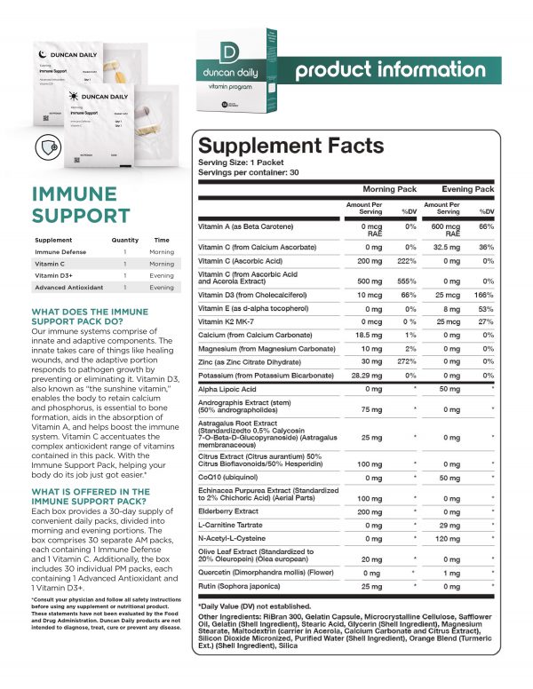 No fillers – just the pre-sorted daily packs of immune defense vitamins for adults. Get your 30-day daily immune system supplements today.